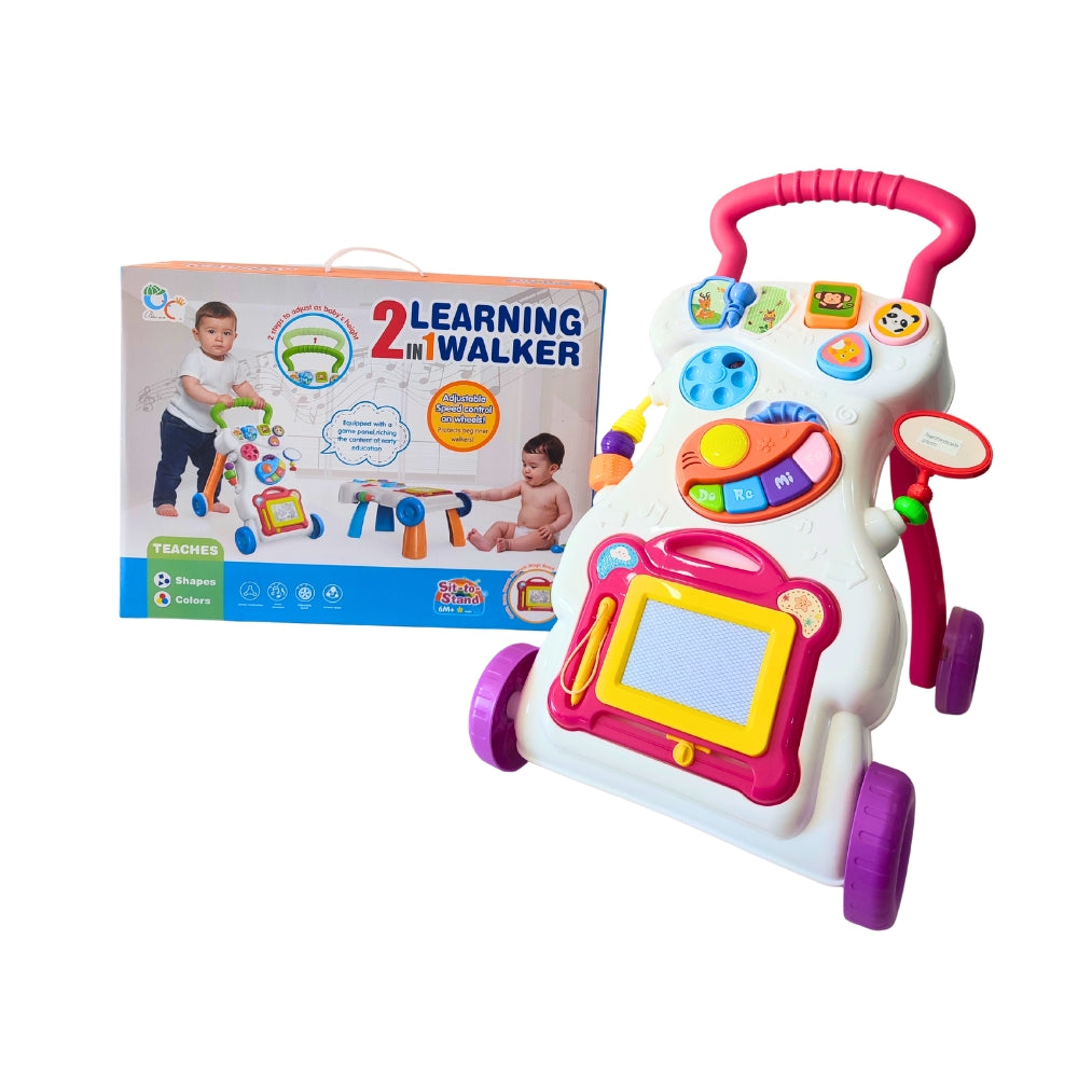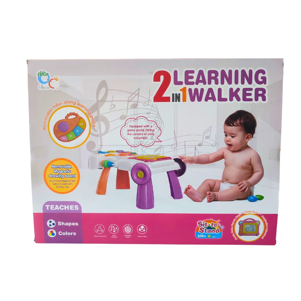 Aide à marcher 2 en 1 transformable qui accompagne votre bébé dans ses premiers pas. Cet accessoire multifonctionnel se convertit facilement en table d'activité complète avec ardoise, piano et jeux musicaux intégrés. Parfait pour stimuler l'apprentissage et la motricité de votre enfant tout en le soutenant lors de la marche. Un investissement pratique qui grandit avec votre bébé.